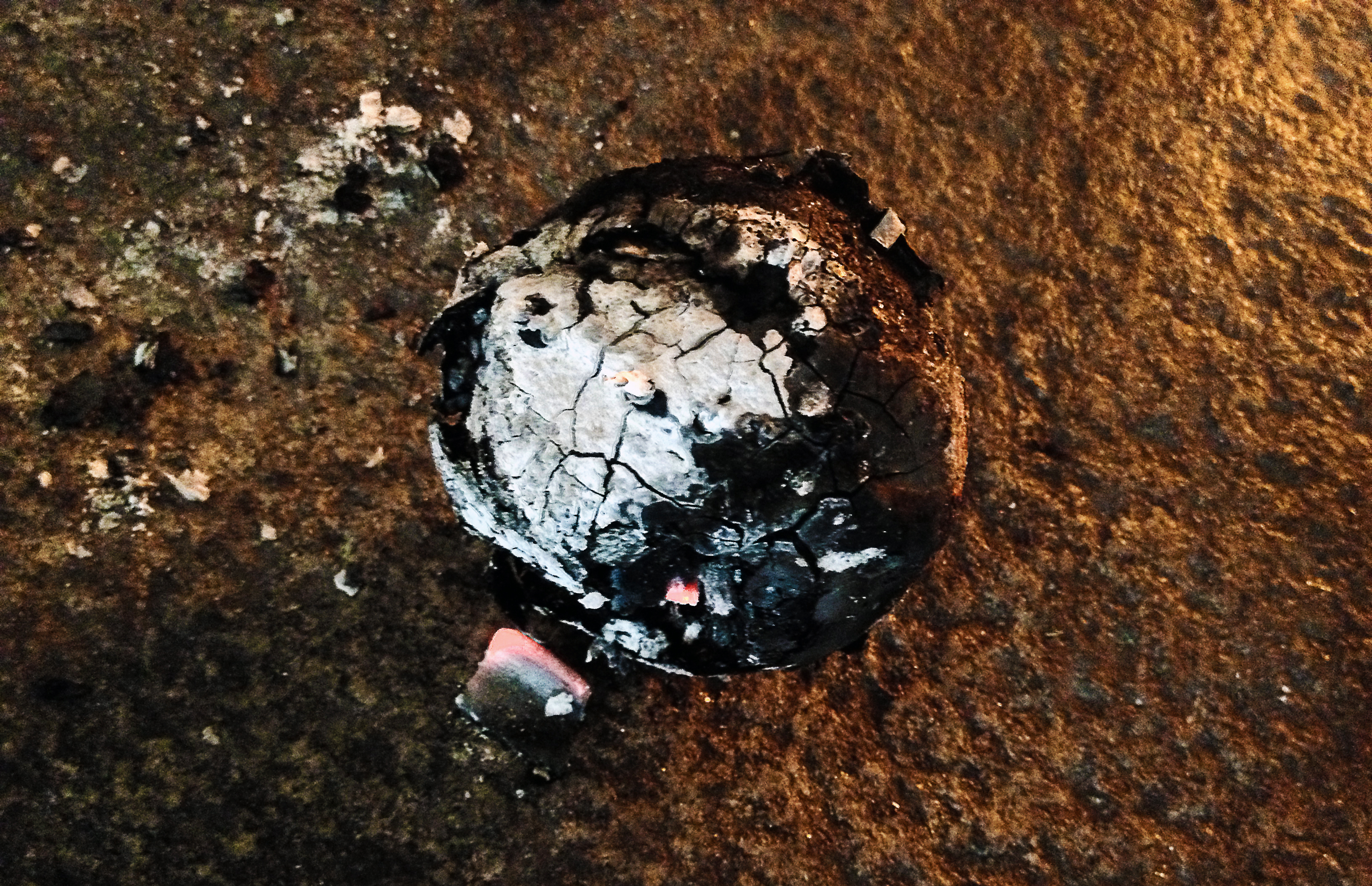 The conception of this experiment arose, rather serendipitously, from the embers of another citrous experiment (this will be hilarious shortly). After smoking a whole lemon over a wood fire in order to procure smoked lemon zest, we decided to place the whole lemon in the fire (see! It’s funny because it was in the actual embers—clever blokes, we are!). We removed the lemon from the fire once the rind had become blackened and embrous, and then proceeded to strip away the more offending burnt portions. The culminating mass had been cooked to a delicate tenderness: mellowed, but undeniably citrus—the bark without the bite—with gossamer notes of char, as though a single layer of charcoal scraped across parchment, had been lifted from the paper, and allowed to settle, at leisure, on the tongue. We experimented with different amounts of charred rind and flesh until we found one that matched our standard for excellence. To achieve this, it is necessary to remove all but those blackened flakes whose size is comparable to the most innocent of freshly-sharpened, pencil-tip breaks. Still, the texture of larger flakes matches wonderfully the heartiness of whole-wheat toast, or the supple flesh of a medium-rare fish.